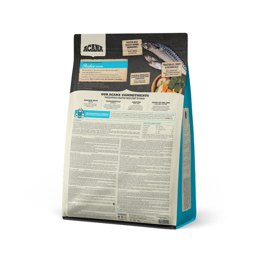 Раціон ACANA Pacifica створений у відповідності до рівнів поживності встановлених FEDIAF для собак всіх стадій життя, включаючи період зростання цуценят великих порід.