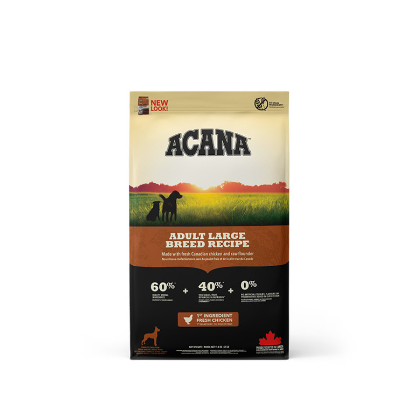 Коли це стосується корму ACANA, кожен інгредієнт має значення.Саме тому, рецептура Adult Large Breed Recipe створюється з турботою, щоб забезпечувати унікальні потреби собак великих порід в харчуванні.Рецептура Акана Едалт Лардж Брід Ресіпе на 60% переповнена якісними м’ясними інгредієнтами, такими як м’ясо канадських курчат та сирої камбали та на 40% збалансована фруктами, овочами та травами.Цей раціон забезпечує вашого собаку протеїнами та необхідними нутрієнтами для забезпечення потреб собак великих порід у харчуванні.