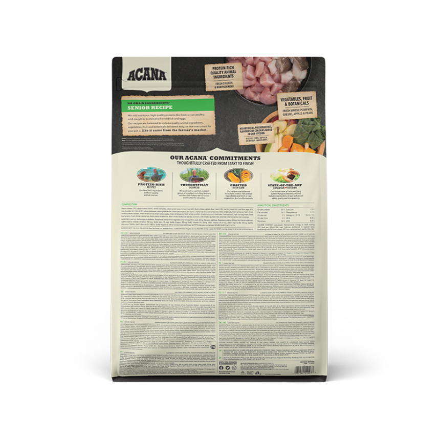 Коли це стосується корму ACANA, кожен інгредієнт має значення. Саме тому, рецептура Senior Recipe створюється з турботою щоб забезпечувати здоров’я старіючих собак.