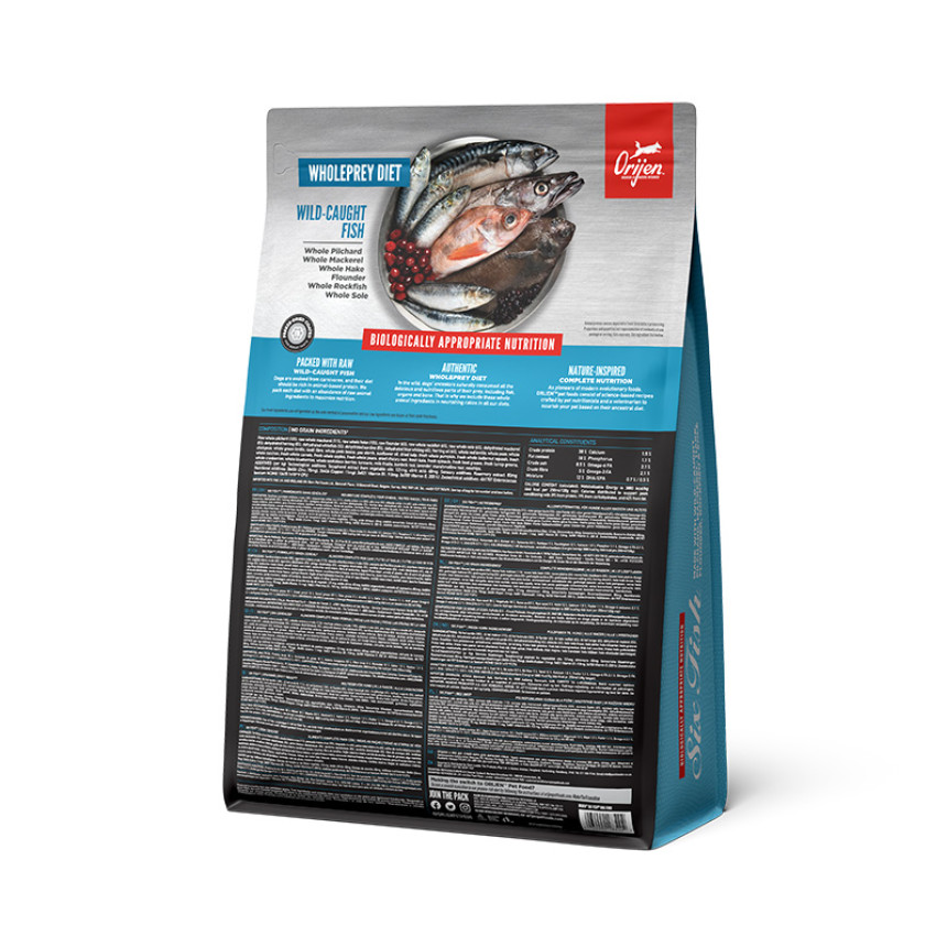 Переповнений високопоживними протеїнами (38%), з меншою кількістю вуглеводів (18%), ORIJEN SIX FISH забезпечує природне харчування собак на всіх стадіях життя, у відповідності до їх еволюційних та біологічних потреб.
