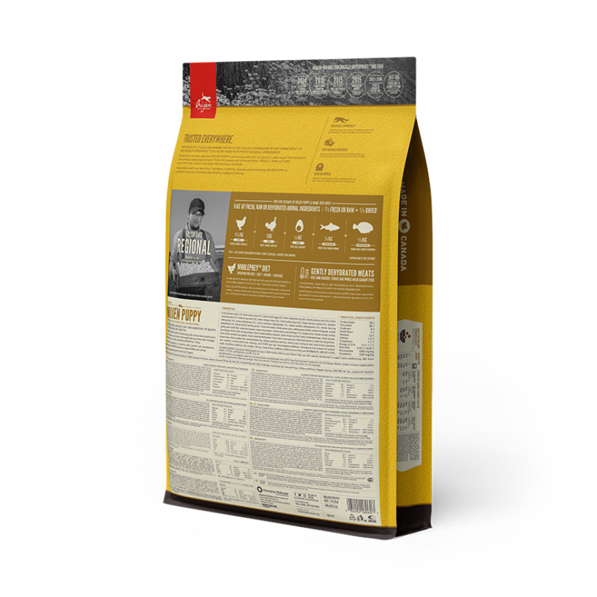 Калорії розподілені так щоб підтримувати найкращу кондицію цуценят, де 38% походить з протеїну, 17% вуглеводів та 45% з жиру. | ORIJEN Regional Red Dog створений у відповідності до рівнів поживності, встановлених FEDIAF для всіх стадій життя, за цуценят німецьких догів до 14 тижнів.