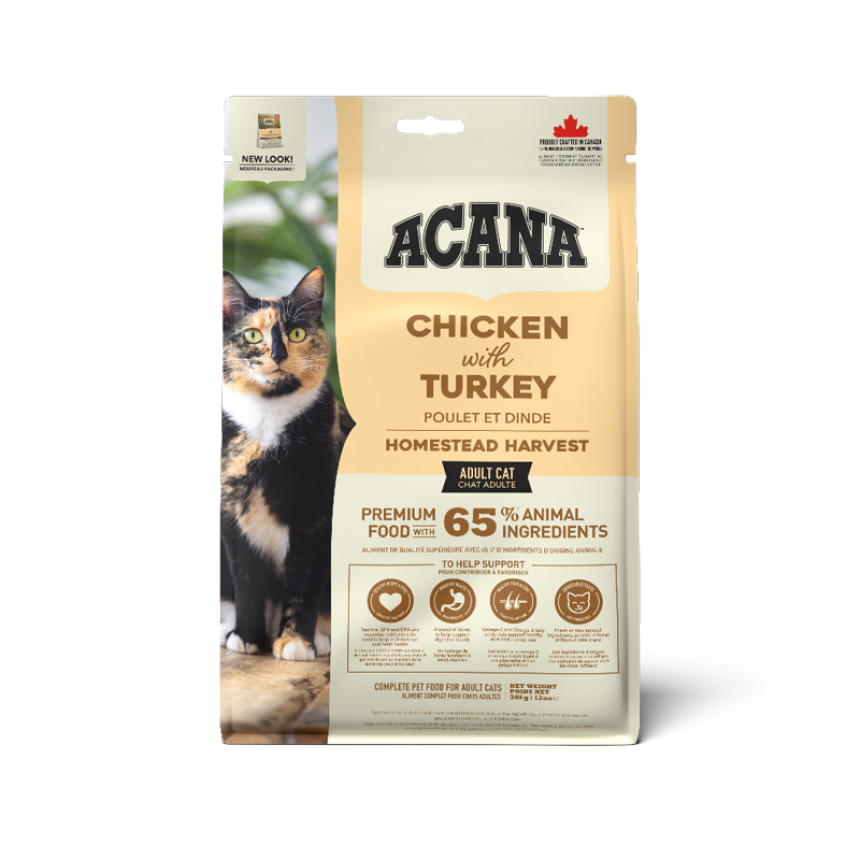 Homestead Harvest АКАНА Хомстед Харвест (Фермерський урожай). Сухий корм для дорослих котів Годуйте вашого дикого кота раціоном сповненим якісними м’ясними інгредієнтами. Новий раціон ACANA ..Детальніше