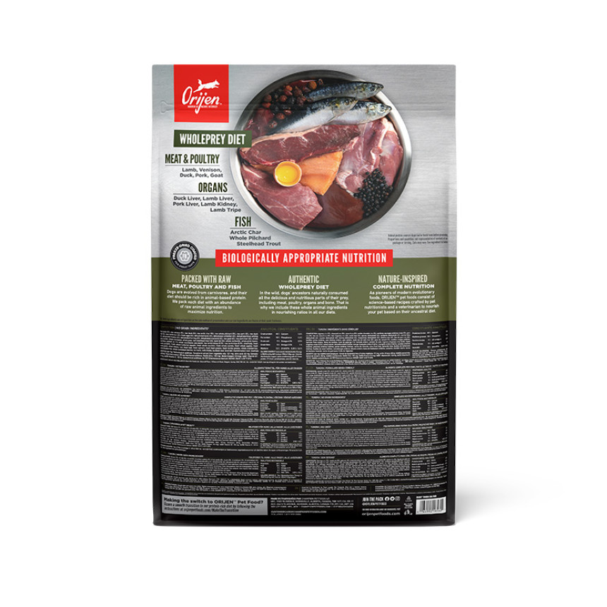 Наші аутентичні раціони WholePrey складаються з найбільш соковитих частин здобичі, таких як м’ясо, качка або риба, органів та їстівних кісток для відтворення раціонів, якими харчувались предки собак в дикій природі.