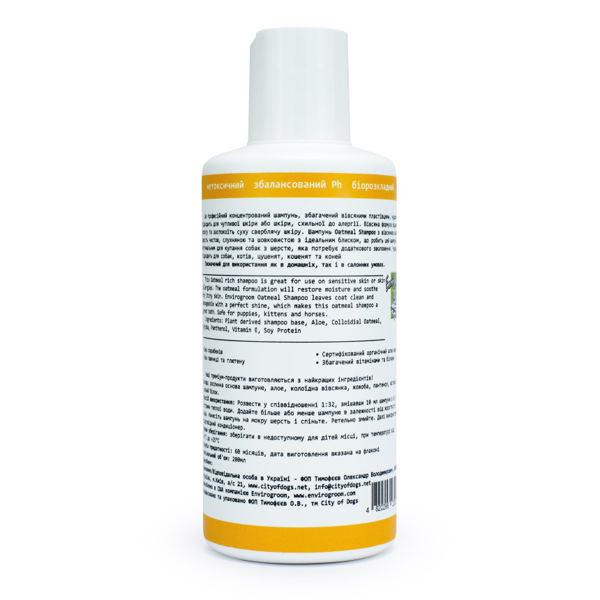 Обов'язковий продукт в арсеналі відповідального грумера. City of Dogs Oatmeal у професійному об'ємі 500 мл дозволяє надавати не тільки косметичні, а й терапевтичні послуги. Економічна концентрація 1:32 (це понад 16 літрів готового шампуню) робить його вигідною інвестицією у якість вашого сервісу.